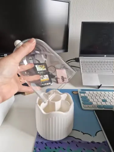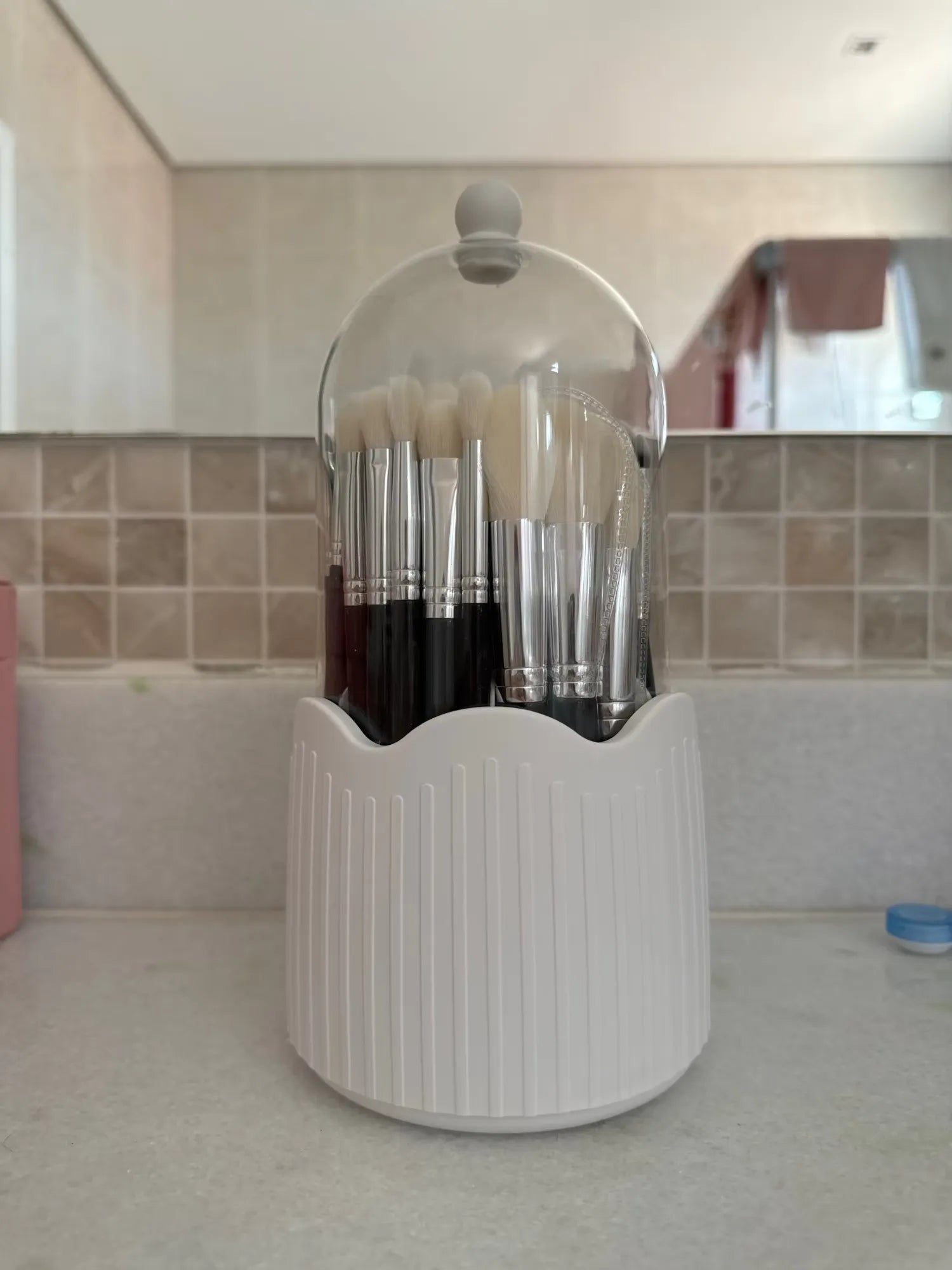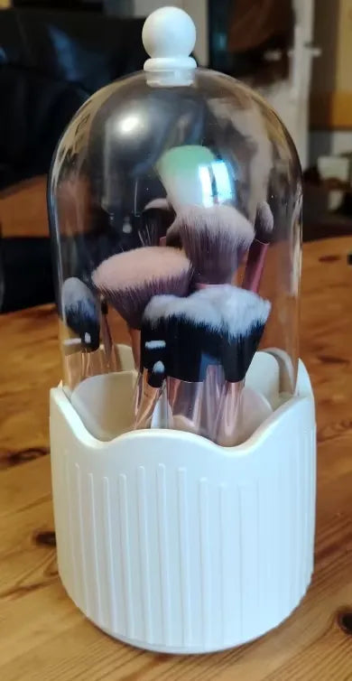 "¡OMG este organizador de maquillaje es un salvavidas! Cabe perfectamente todos mis pinceles y labiales. Me encanta la rotación de 360°, hace que prepararse sea mucho más fácil. Además, ¡es súper lindo en mi tocador! ¿Quién diría que organizar podría ser tan chic? Lo recomiendo mucho para mantener tu espacio libre de desorden.💄💅😊"
